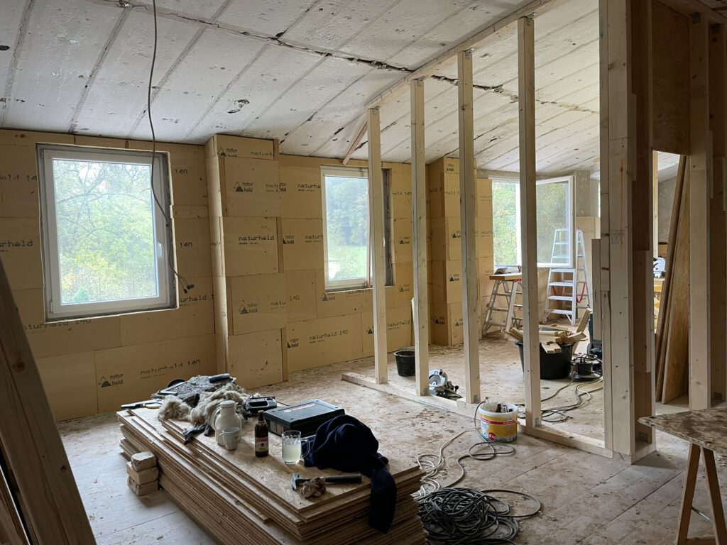 Dämmung der Außenwände und Wandbau.